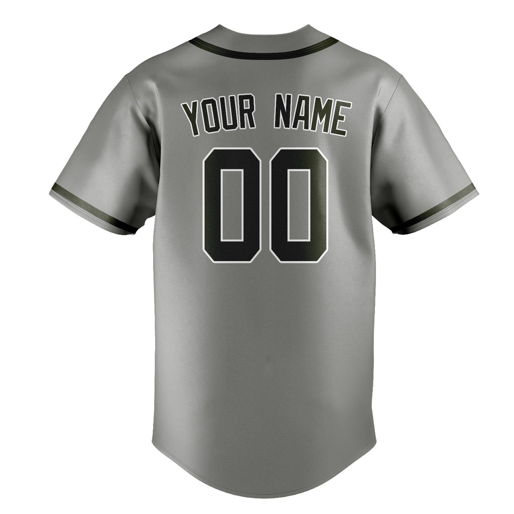 Custom Gray & Olive Colors Design Sports Baseball Jersey