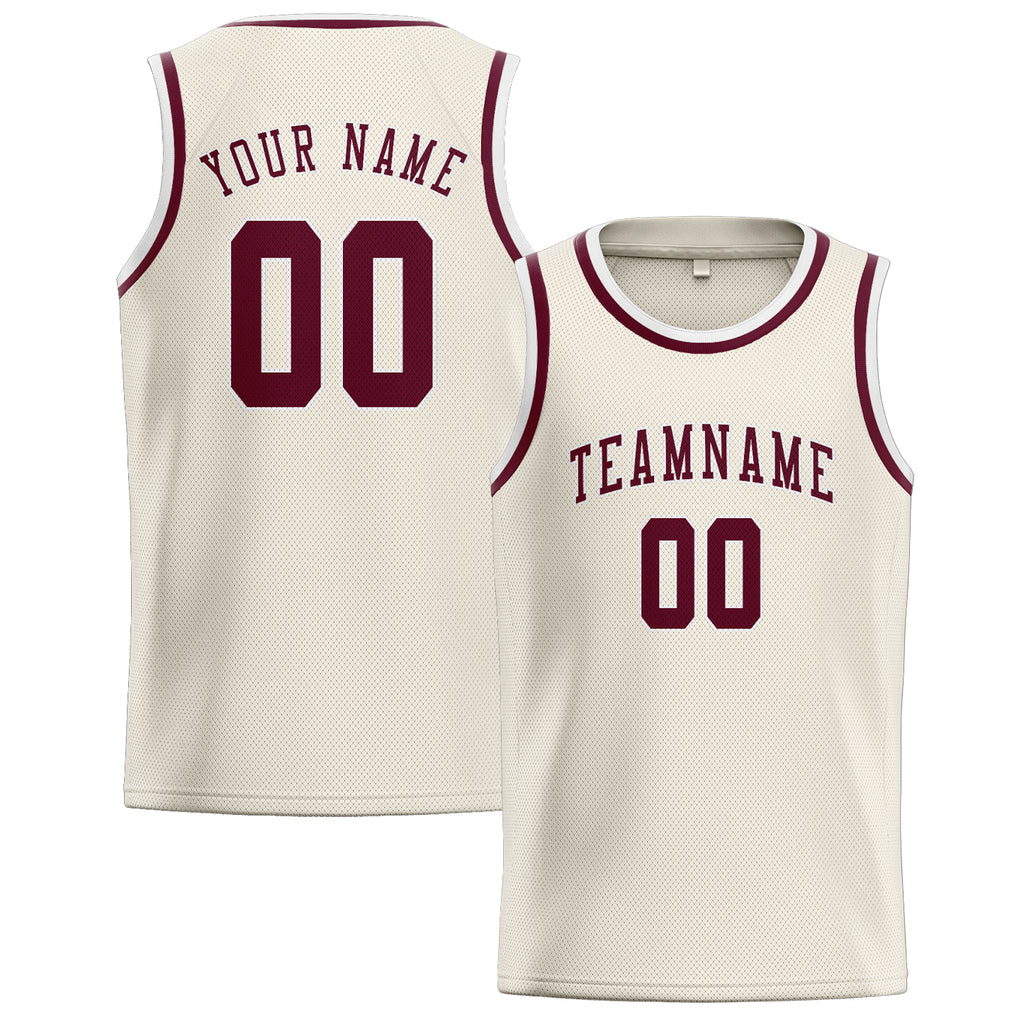 Custom Cream & Crimson Red Colors Design Sports Basketball Jersey