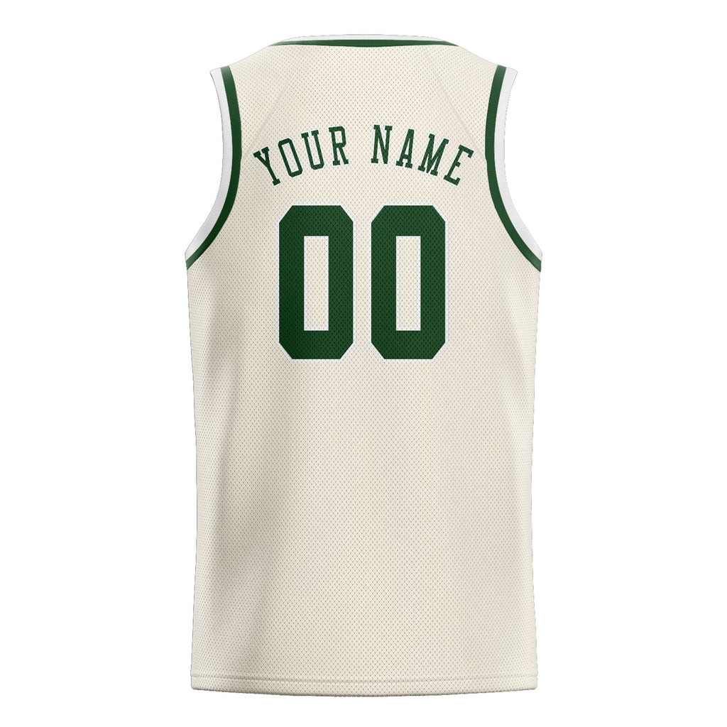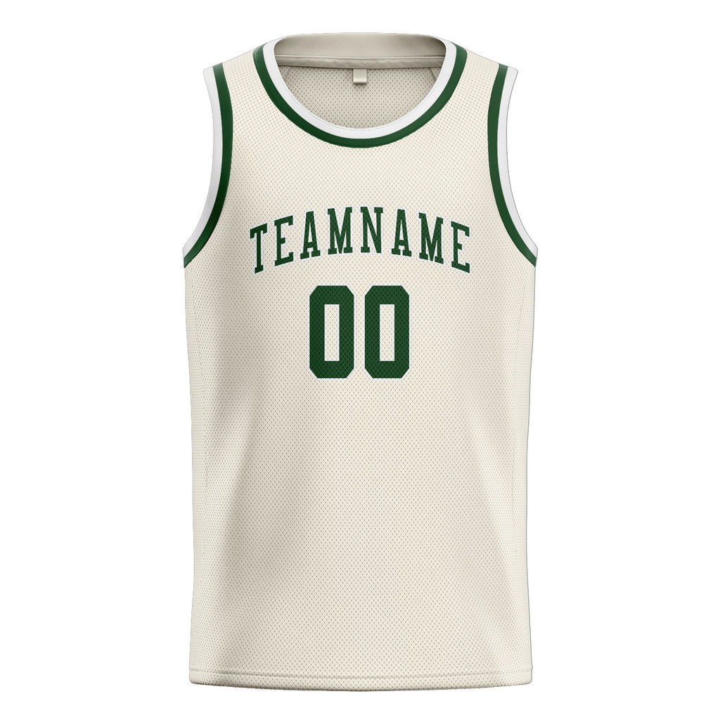 Custom Cream & Dark Green Colors Design Sports Basketball Jersey