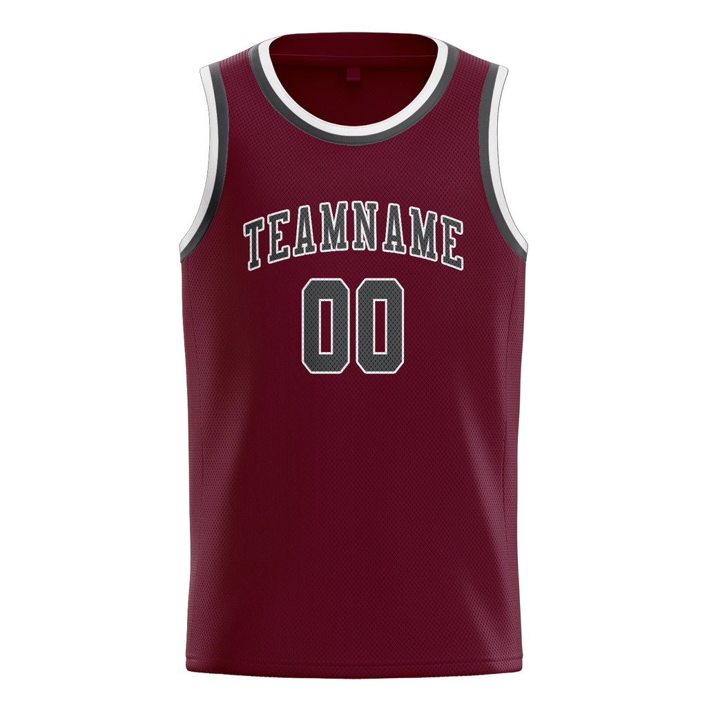 Custom Crimson Red & Dark Grey Colors Design Sports Basketball Jersey