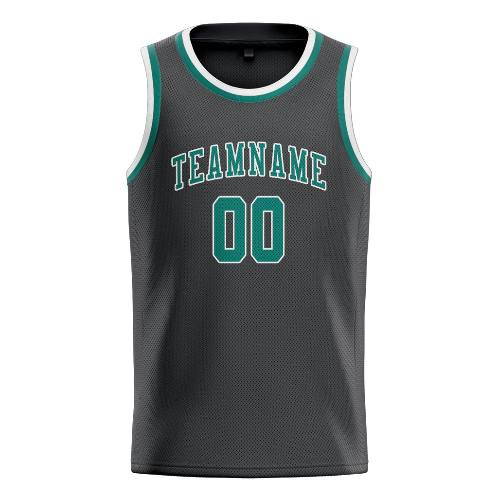 Custom Dark Grey & Blue Green Colors Design Sports Basketball Jersey