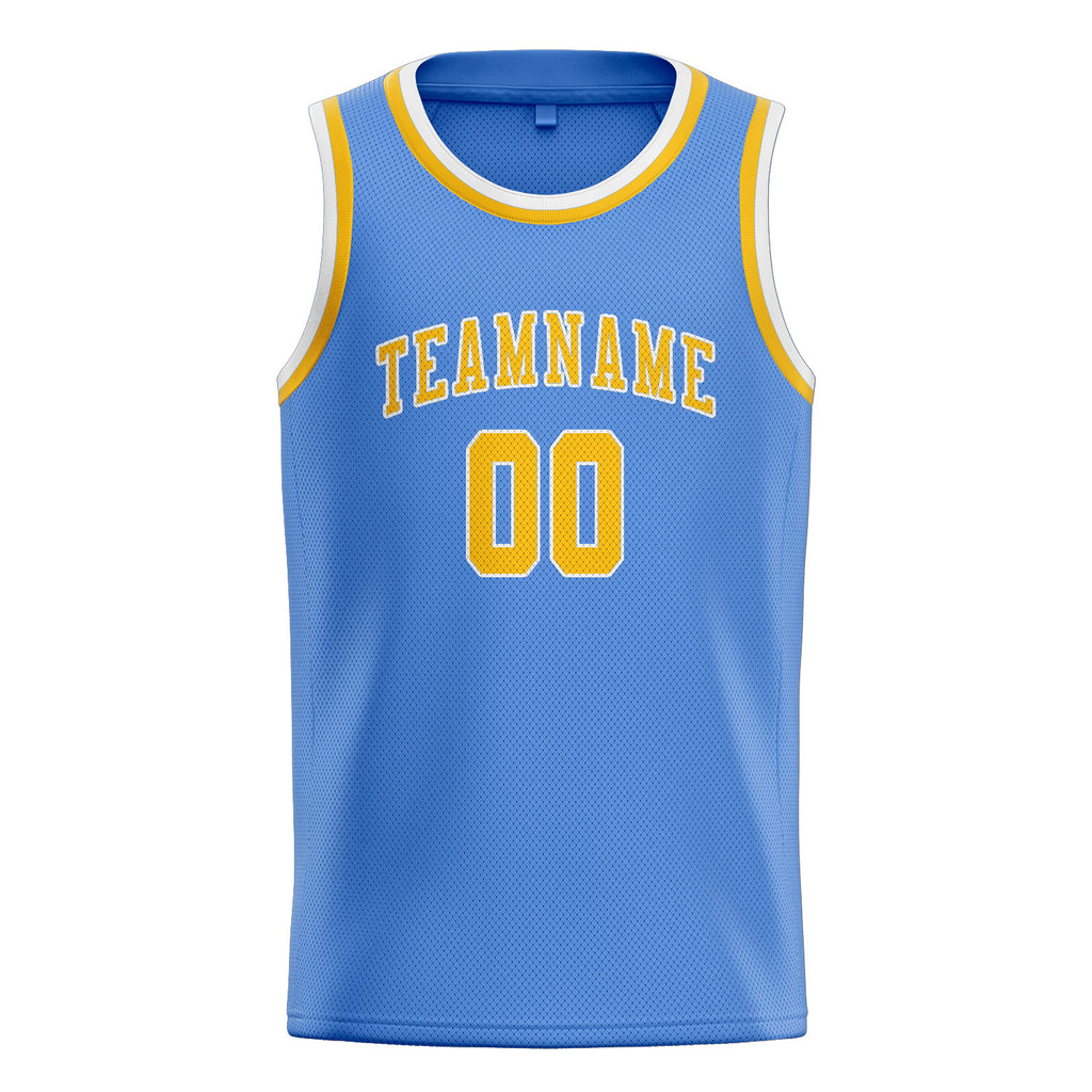 Custom Light Blue & Gold Colors Design Sports Basketball Jersey