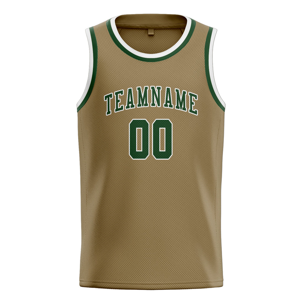 Custom Light Khaki & Dark Green Colors Design Sports Basketball Jersey