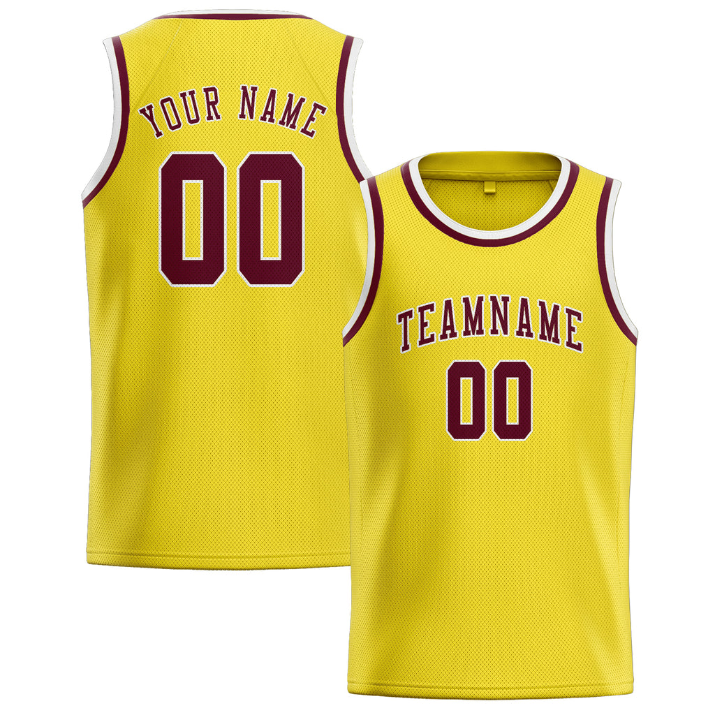 Custom Light Yellow & Crimson Red Colors Design Sports Basketball Jersey