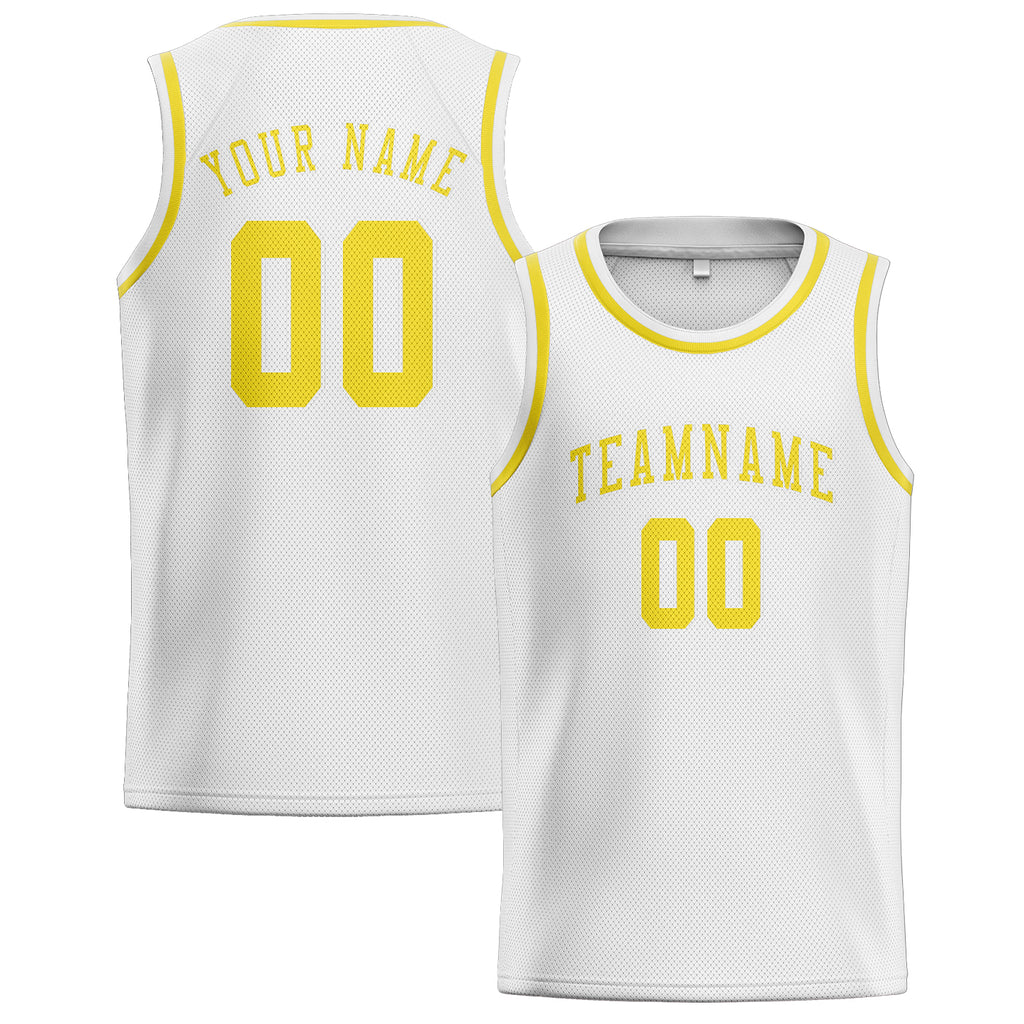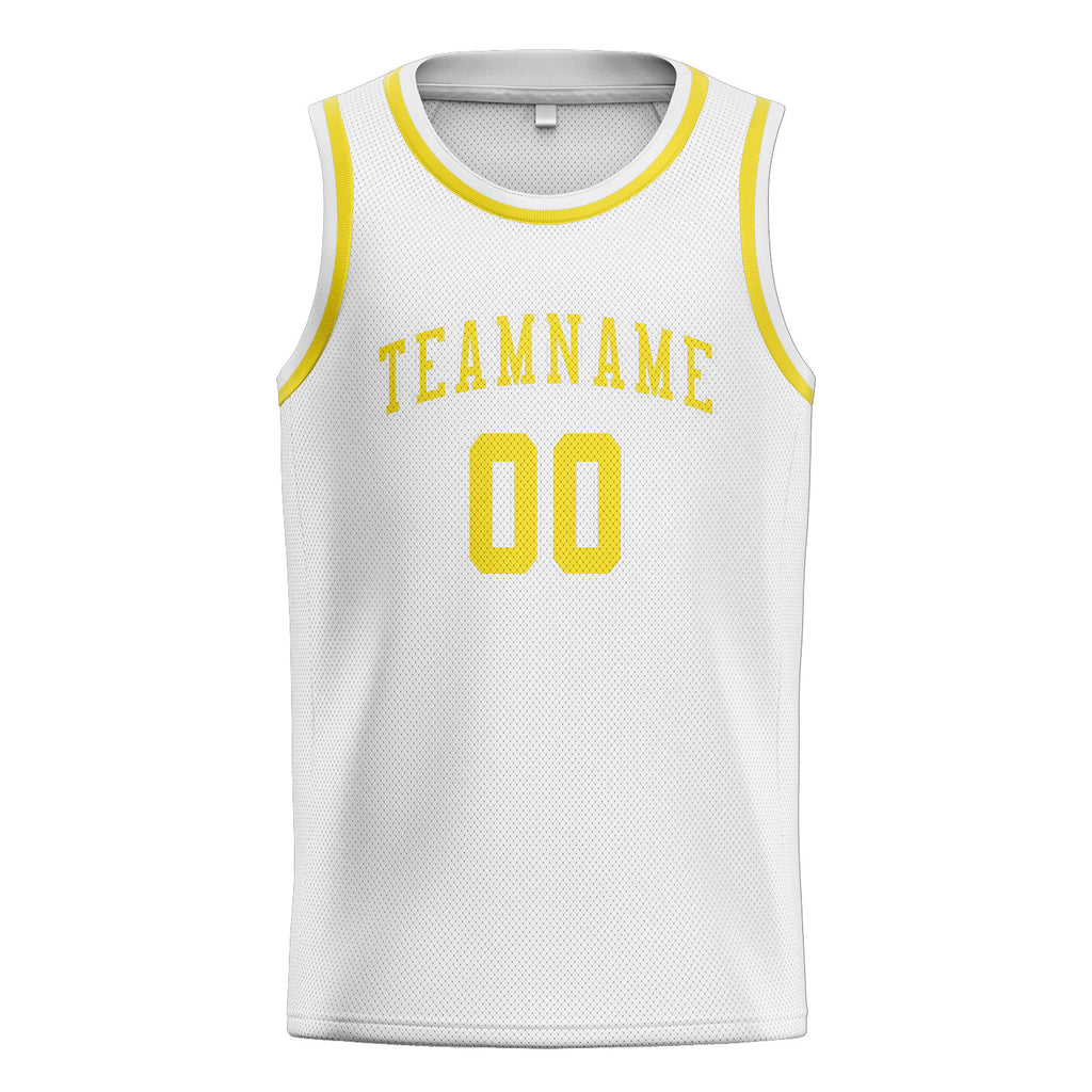 Custom White & Light Yellow Colors Design Sports Basketball Jersey