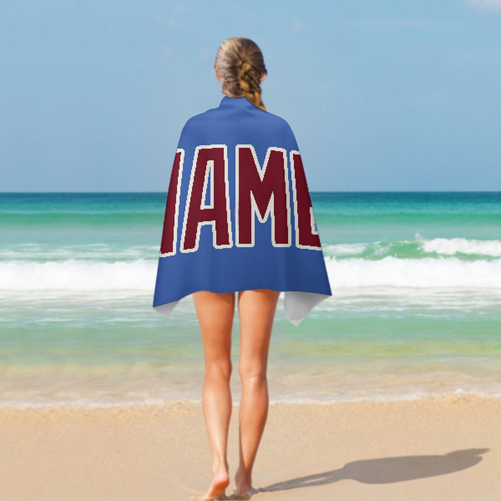 Custom Sky Blue Crimson Red Beach Towel