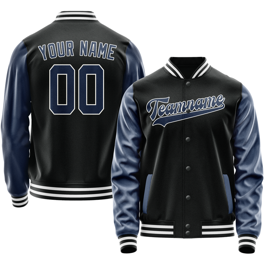 Custom Black Royal Solid Color Varsity Letterman Jacket