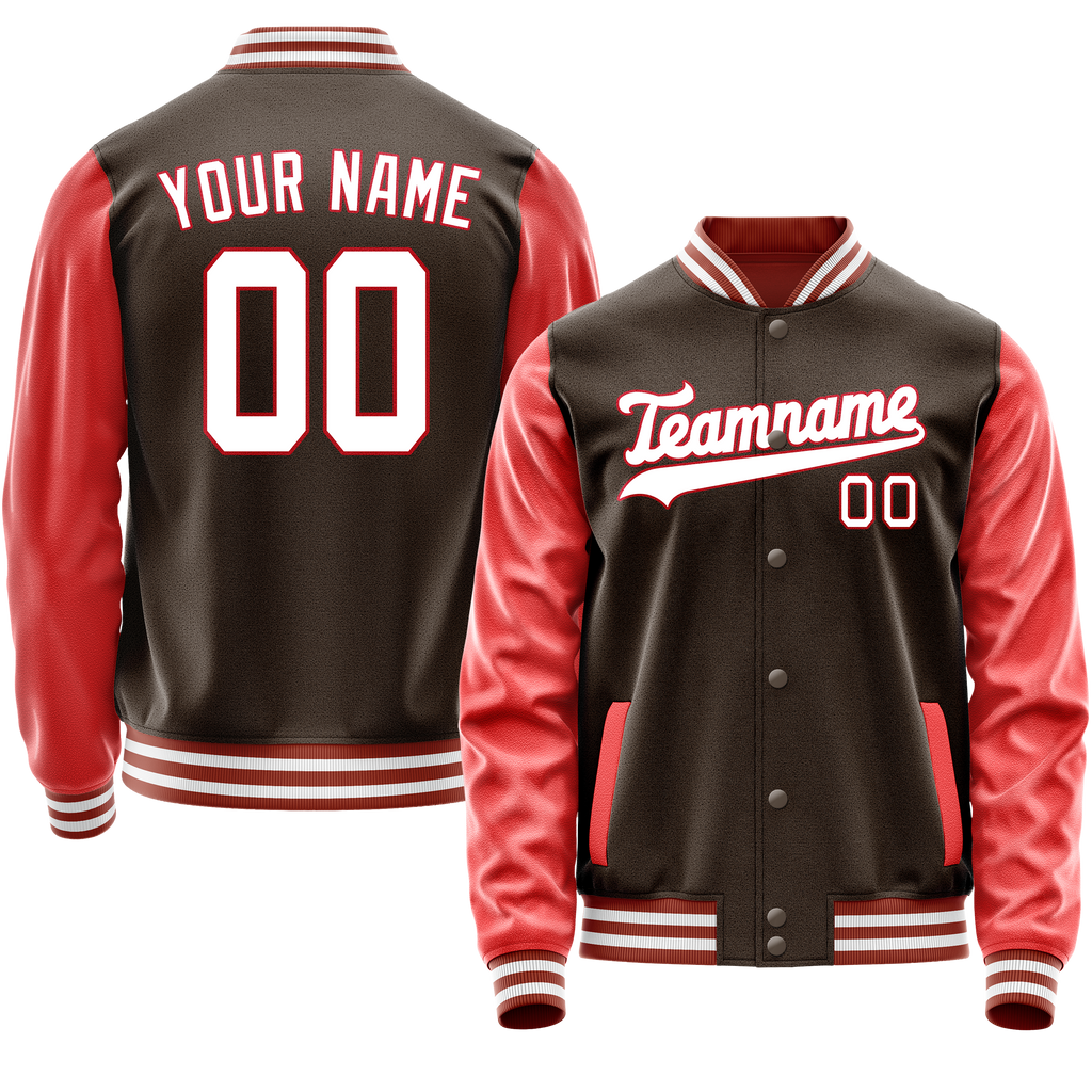 Custom Brown Texas-Orange Solid Color Varsity Letterman Jacket