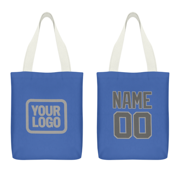 Custom Sky Blue Dark Grey Canvas Tote Bag