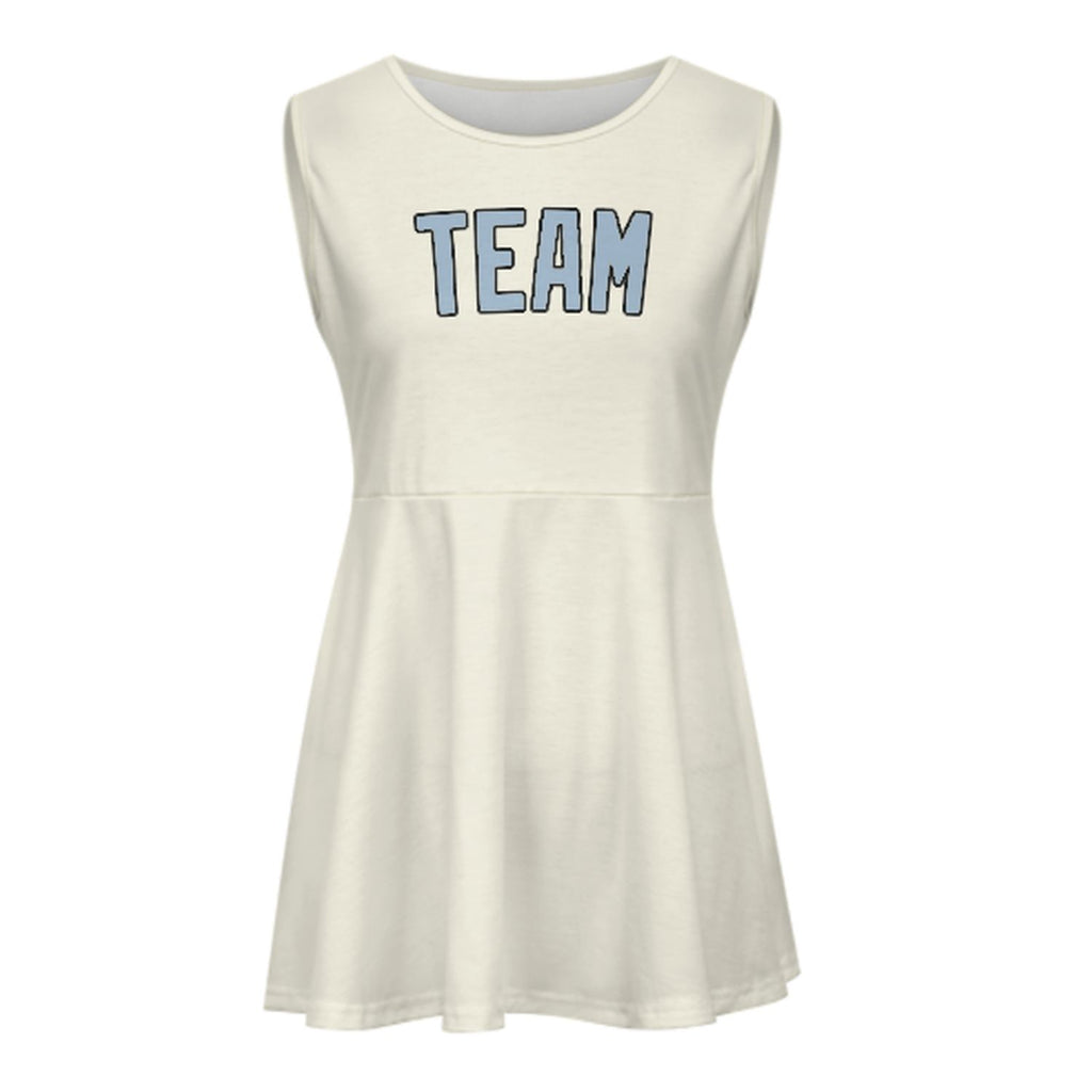 - Design: Round neckline and sleeveless cut – ensures maximum freedom of movement while cheering and dancing
