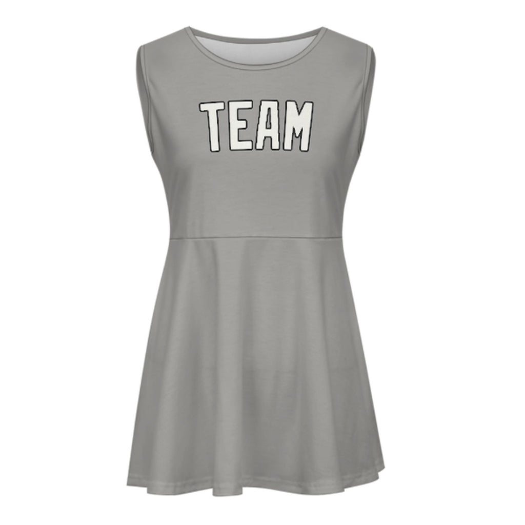 - Design: Round neckline and sleeveless cut – ensures maximum freedom of movement while cheering and dancing