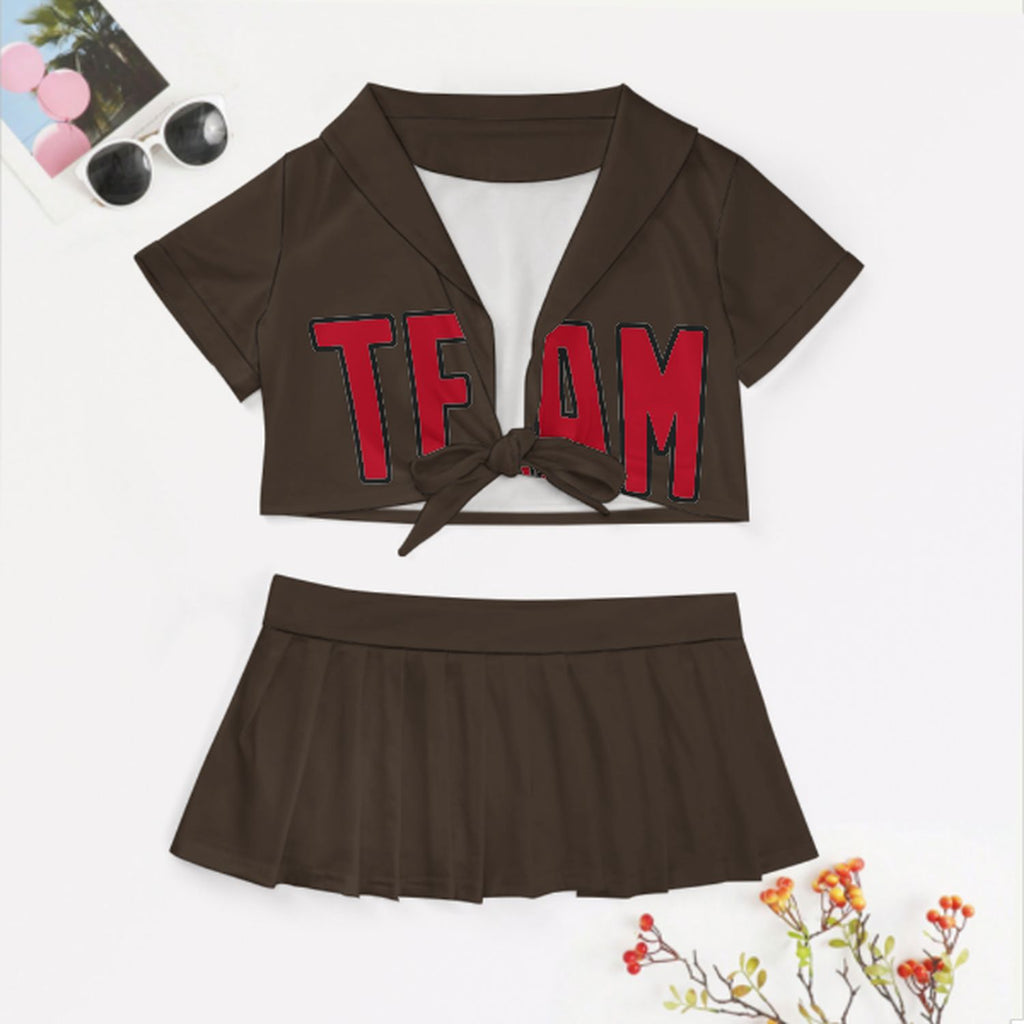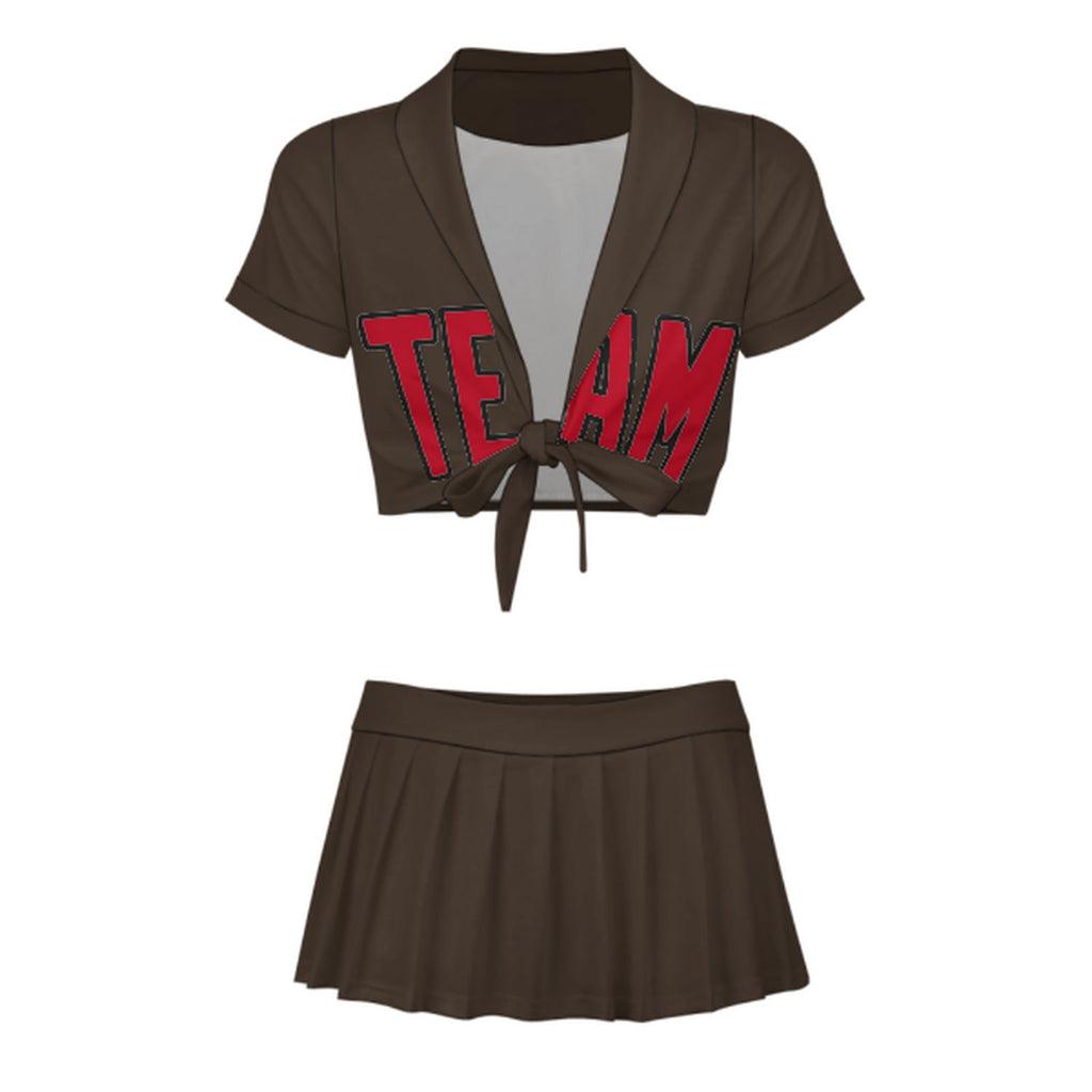 Custom Brown Red Cheerleading Uniform Set