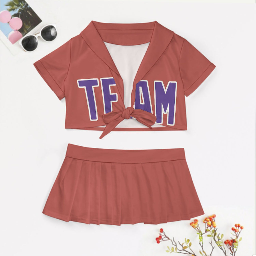 Custom Copper Rose Light Purple Cheerleading Uniform Set