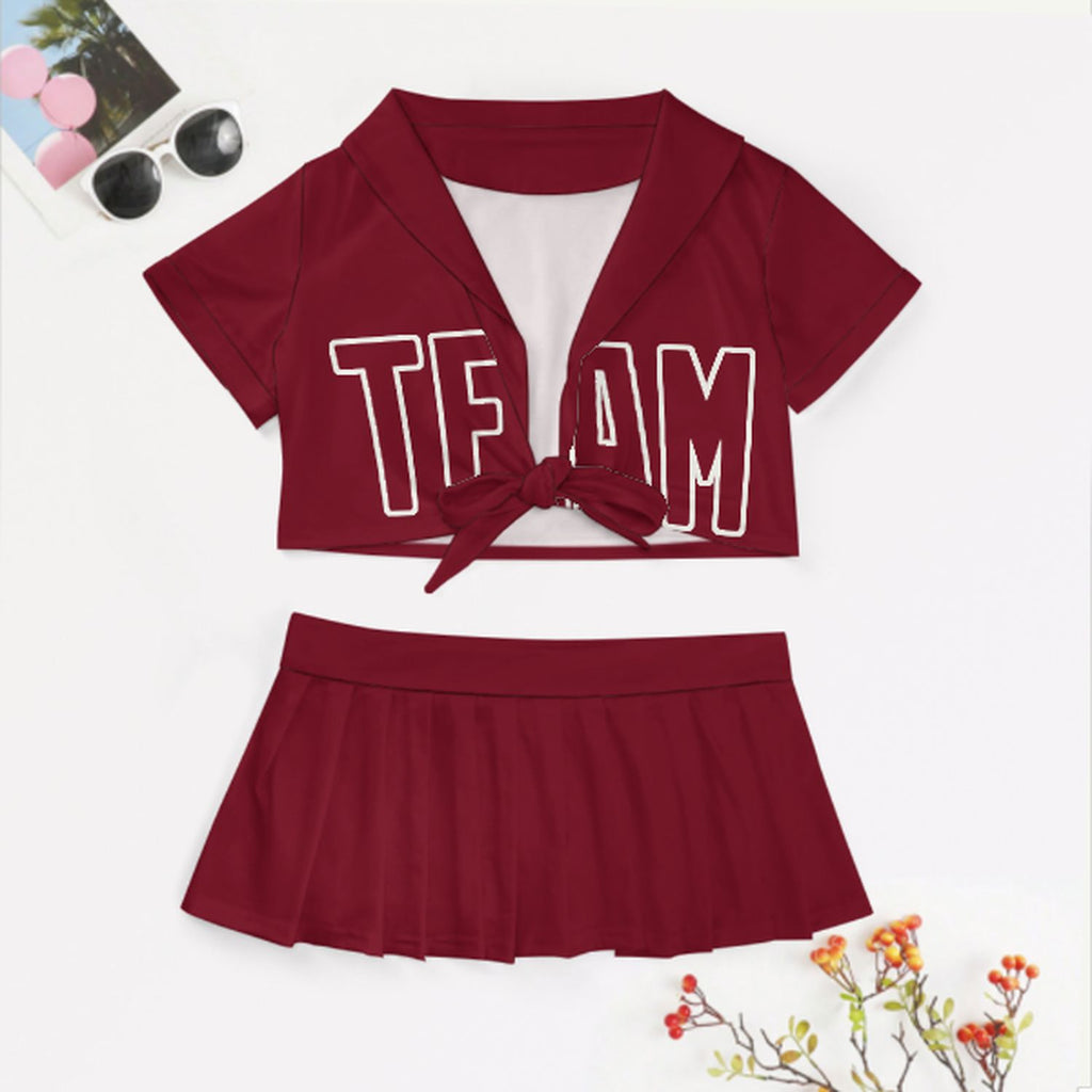 Custom Crimson Red Crimson Red Cheerleading Uniform Set
