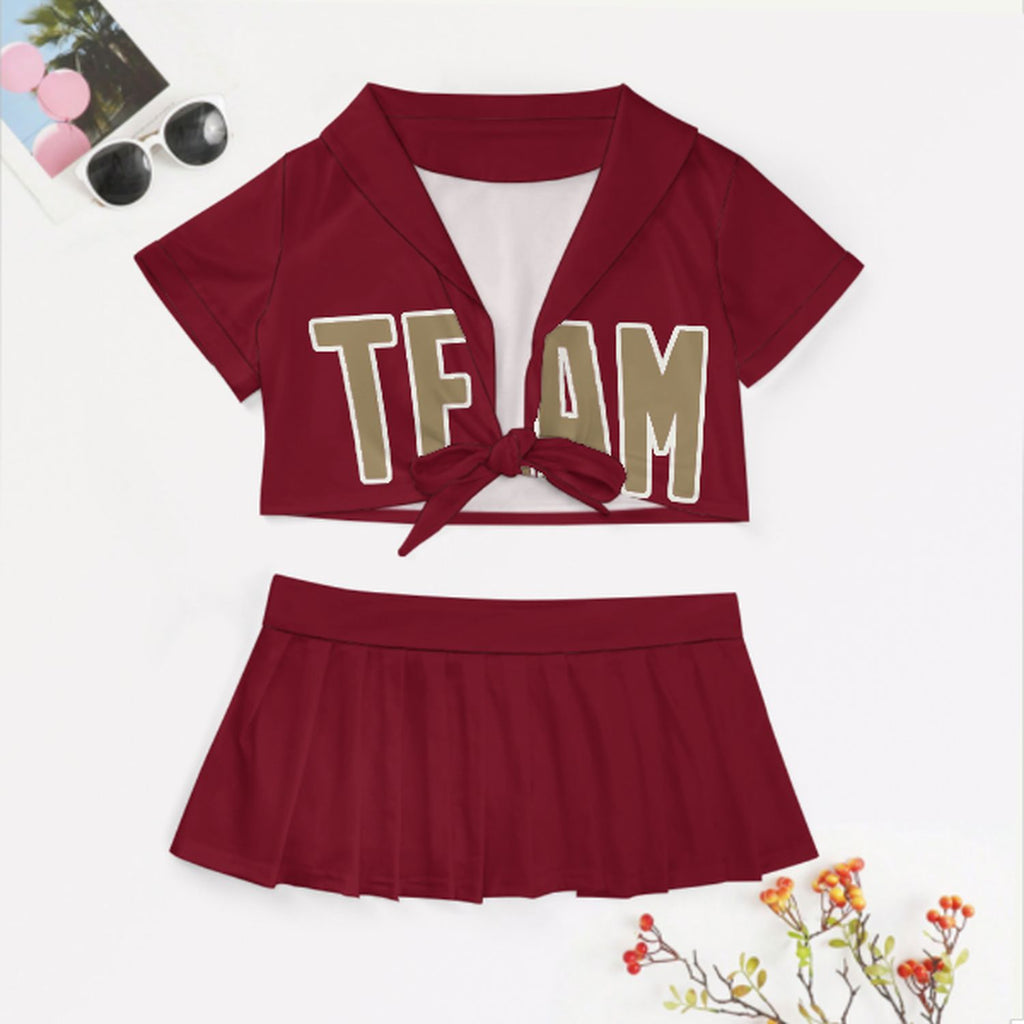 Custom Crimson Red Light Khaki Cheerleading Uniform Set