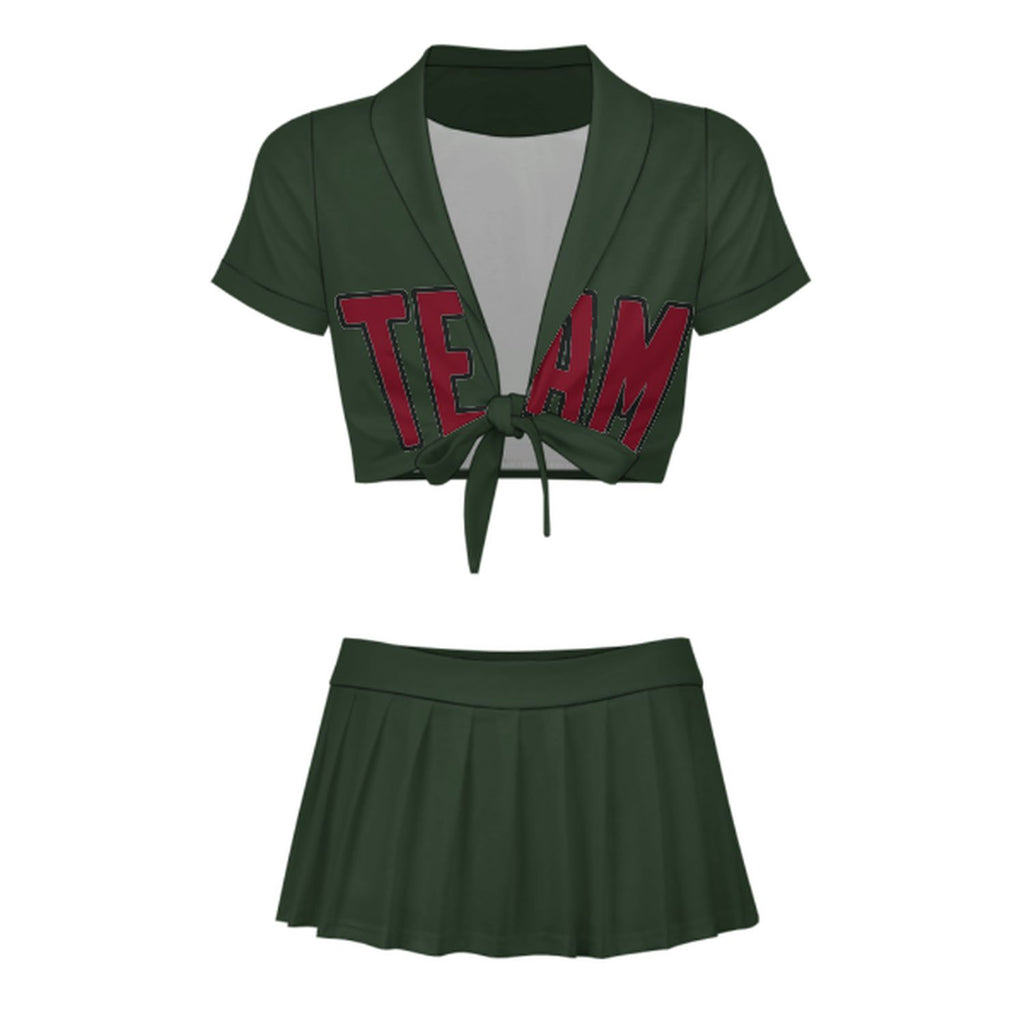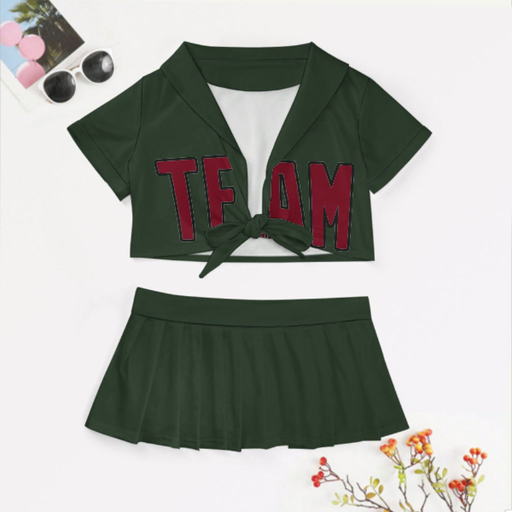 Custom Dark Green Crimson Red Cheerleading Uniform Set
