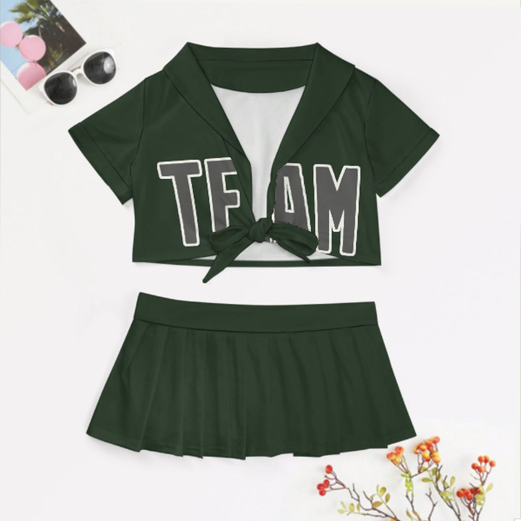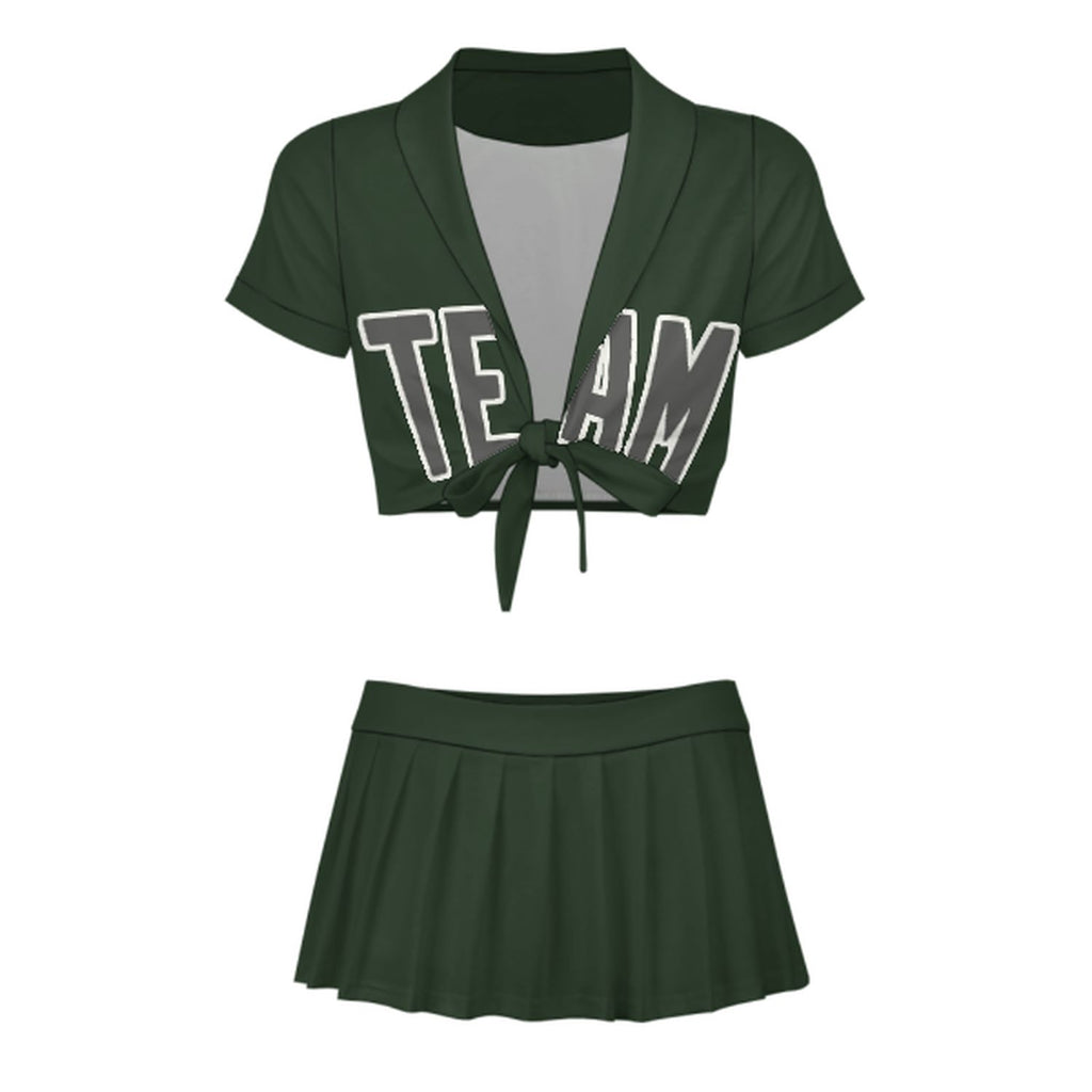 Custom Dark Green Dark Grey Cheerleading Uniform Set