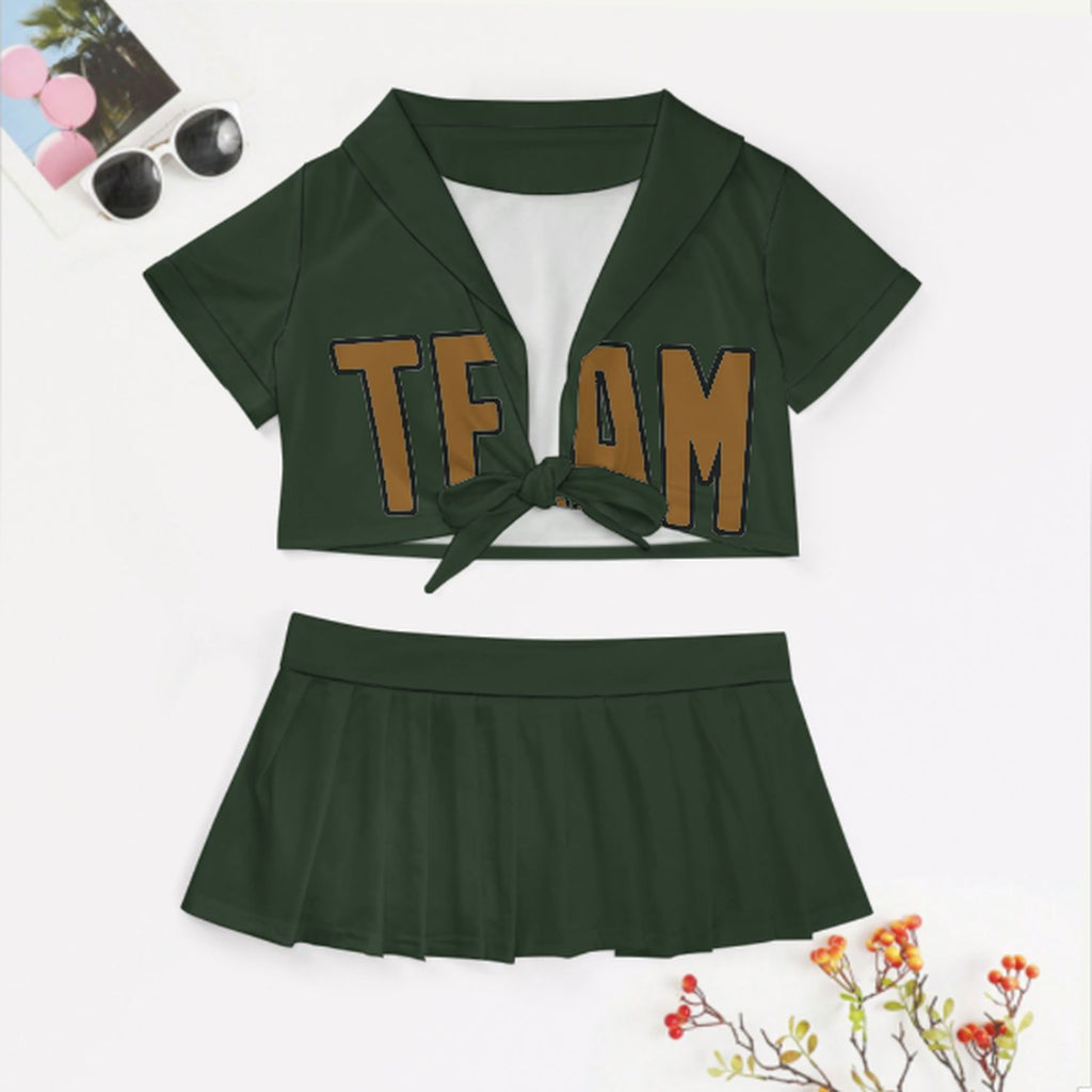 Custom Dark Green Khaki Cheerleading Uniform Set