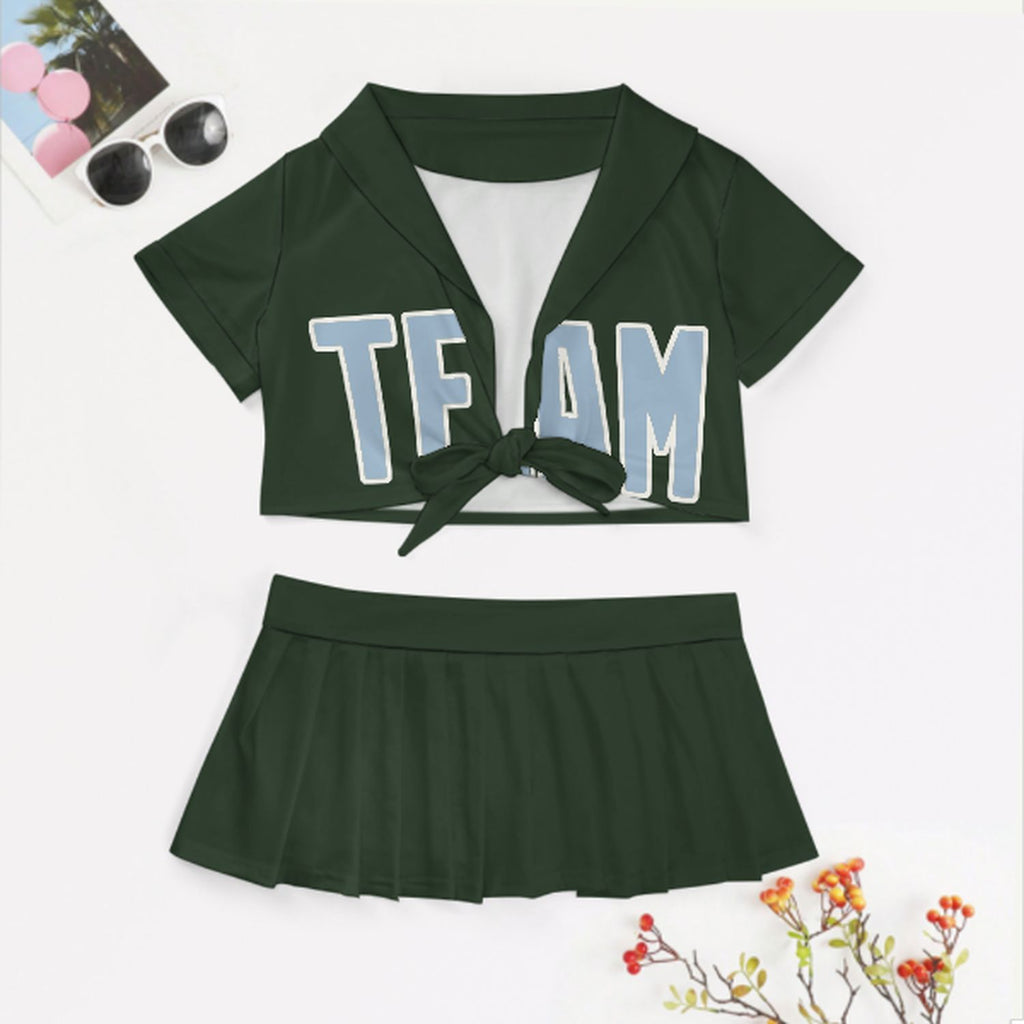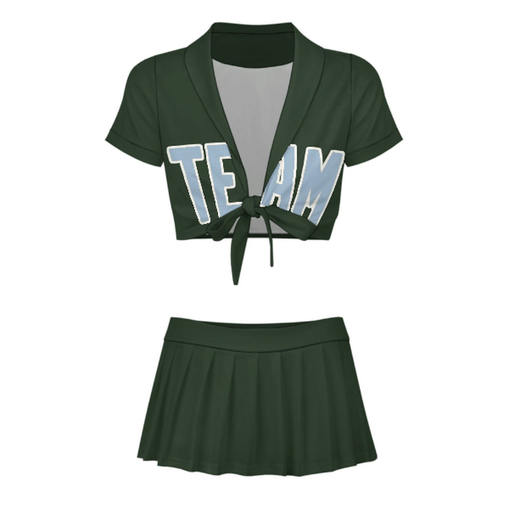 Custom Dark Green Light Blue Cheerleading Uniform Set