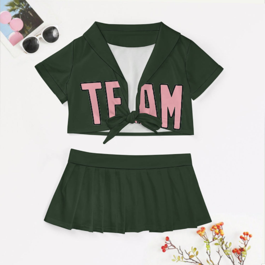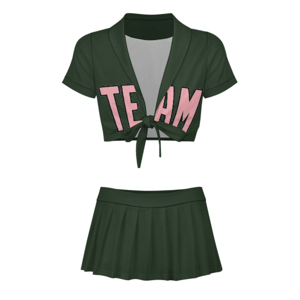 Custom Dark Green Light Pink Cheerleading Uniform Set