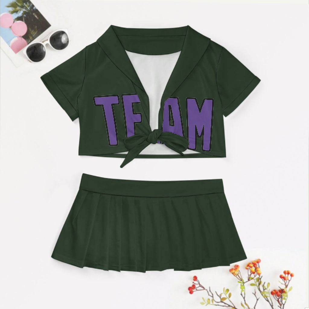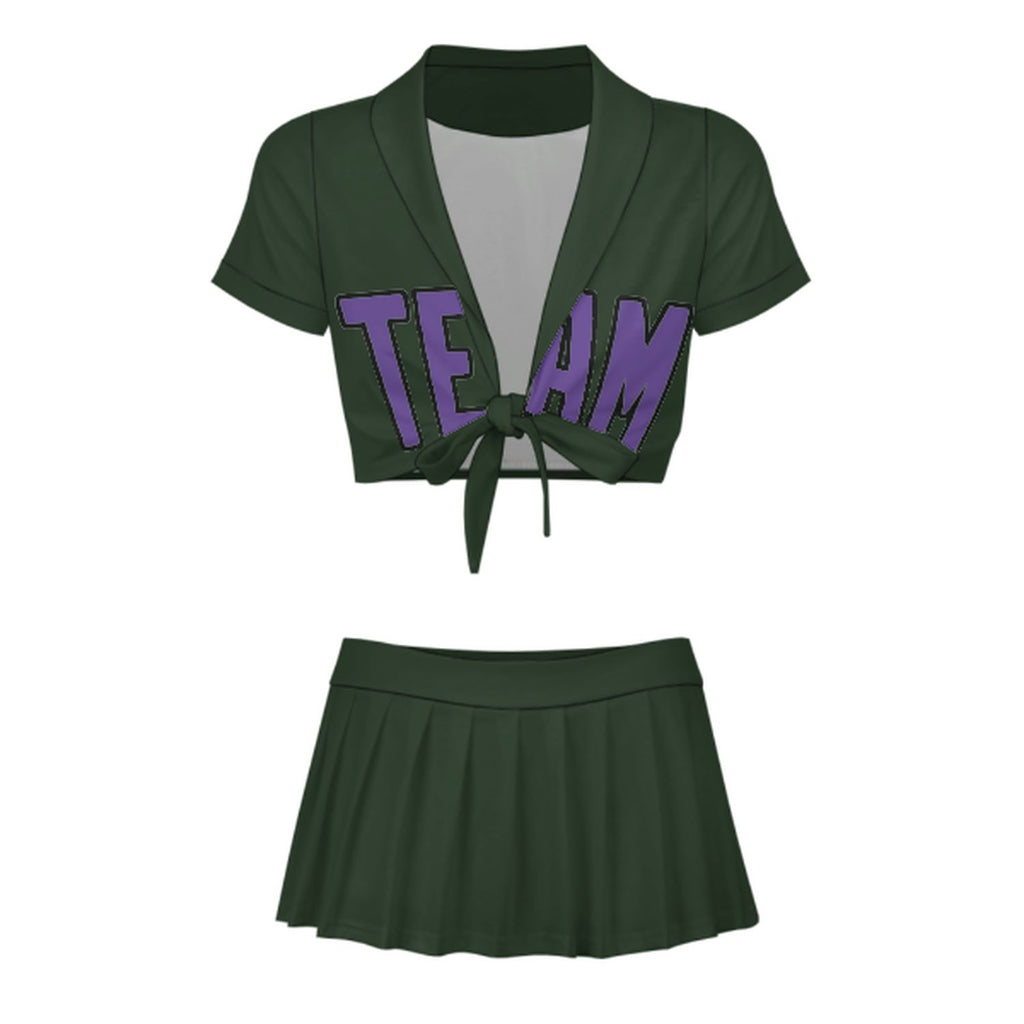 Custom Dark Green Light Purple Cheerleading Uniform Set