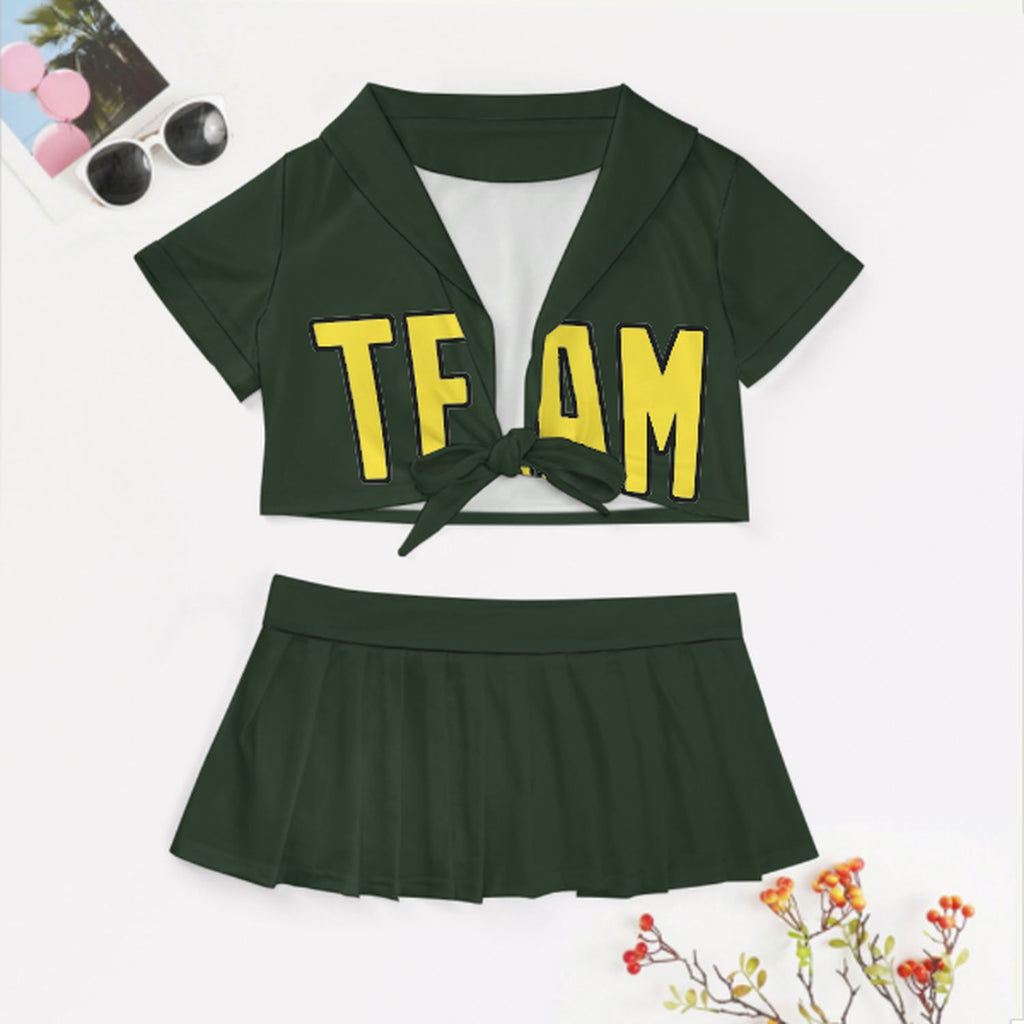 Custom Dark Green Light Yellow Cheerleading Uniform Set
