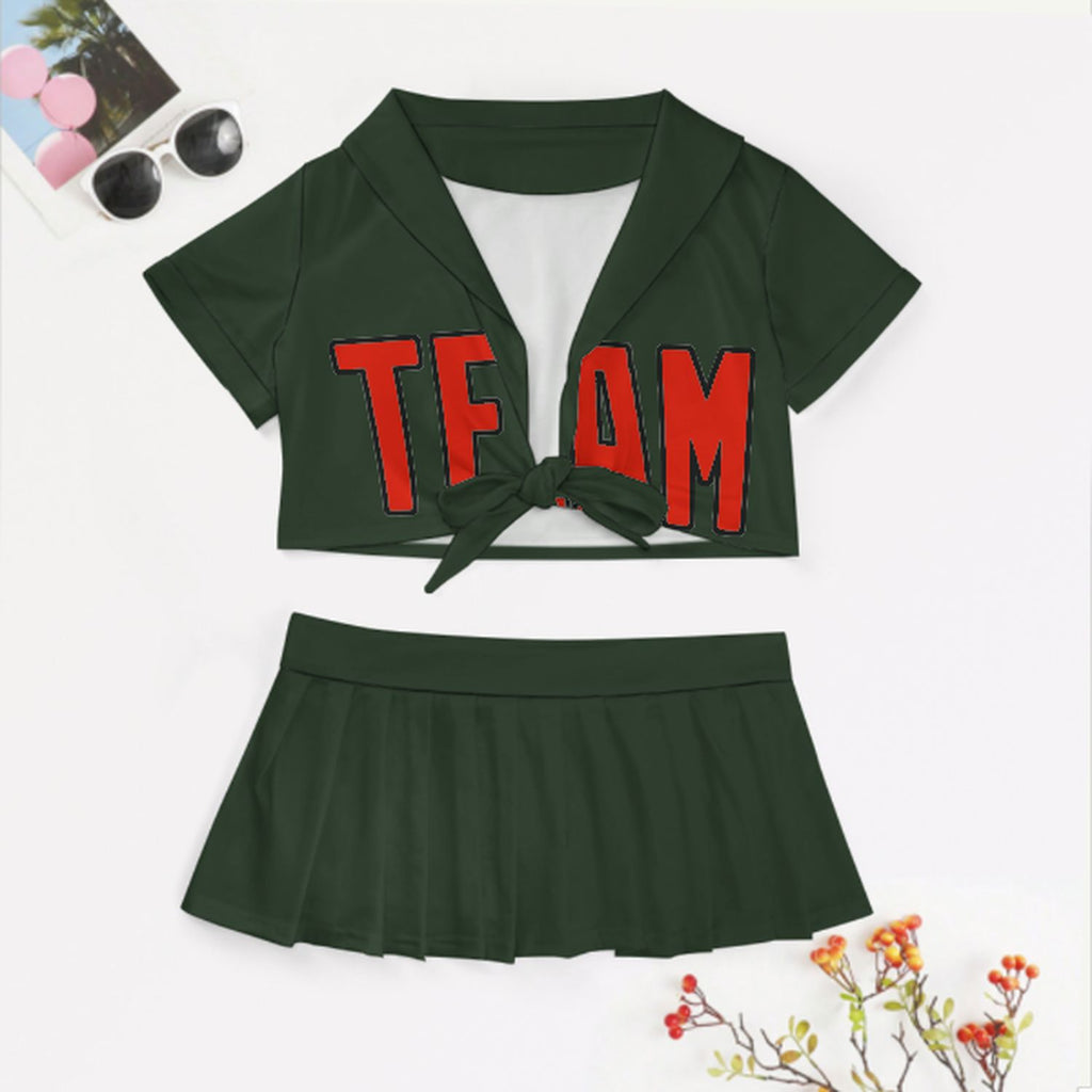 Custom Dark Green Orange Red Cheerleading Uniform Set