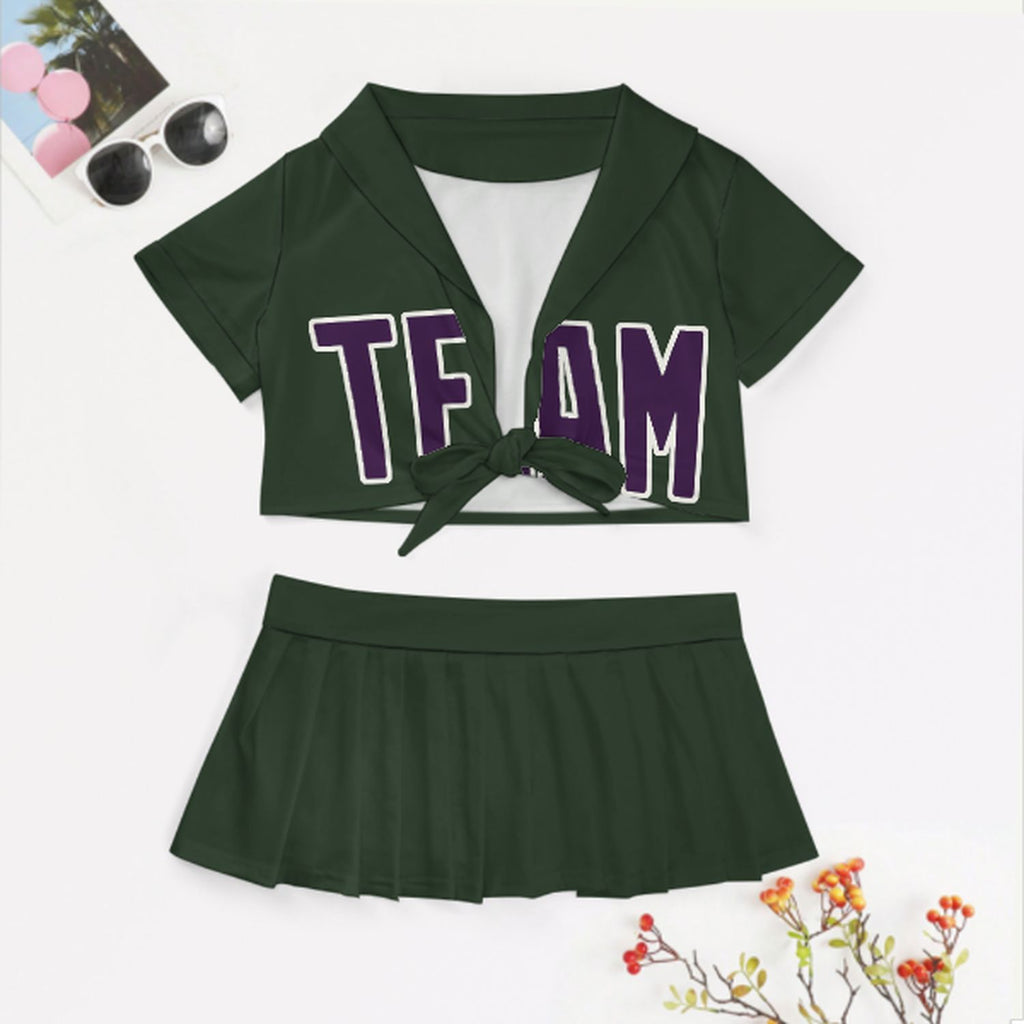 Custom Dark Green Purple Cheerleading Uniform Set