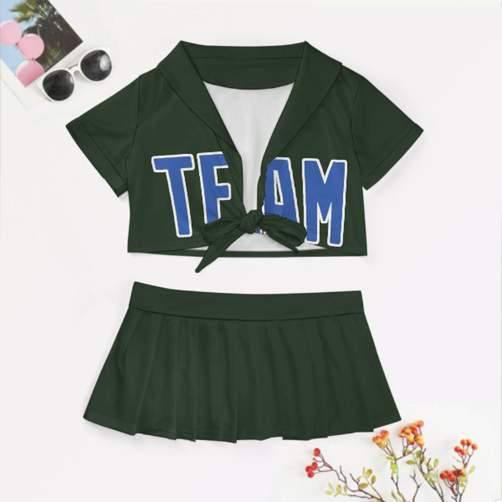 Custom Dark Green Sky Blue Cheerleading Uniform Set