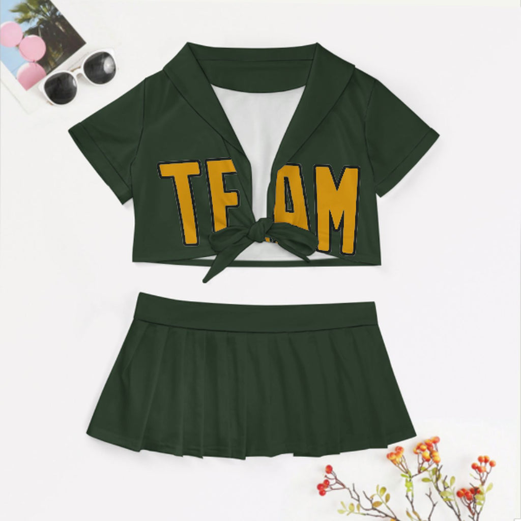 Custom Dark Green Yellow Cheerleading Uniform Set