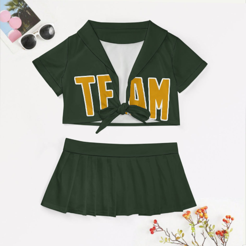 Custom Dark Green Yellow Cheerleading Uniform Set