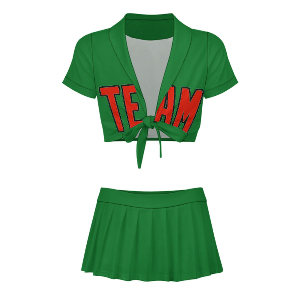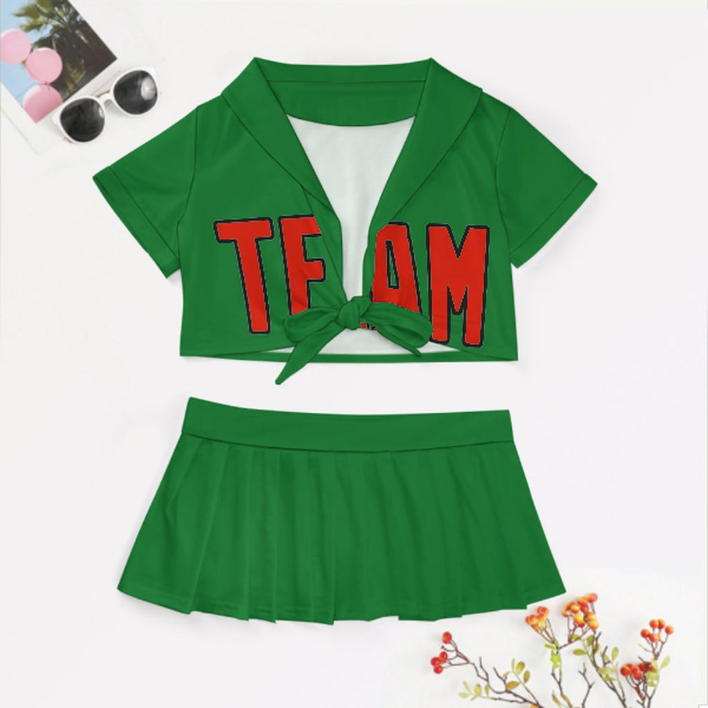 Custom Emerald Green Orange Red Cheerleading Uniform Set