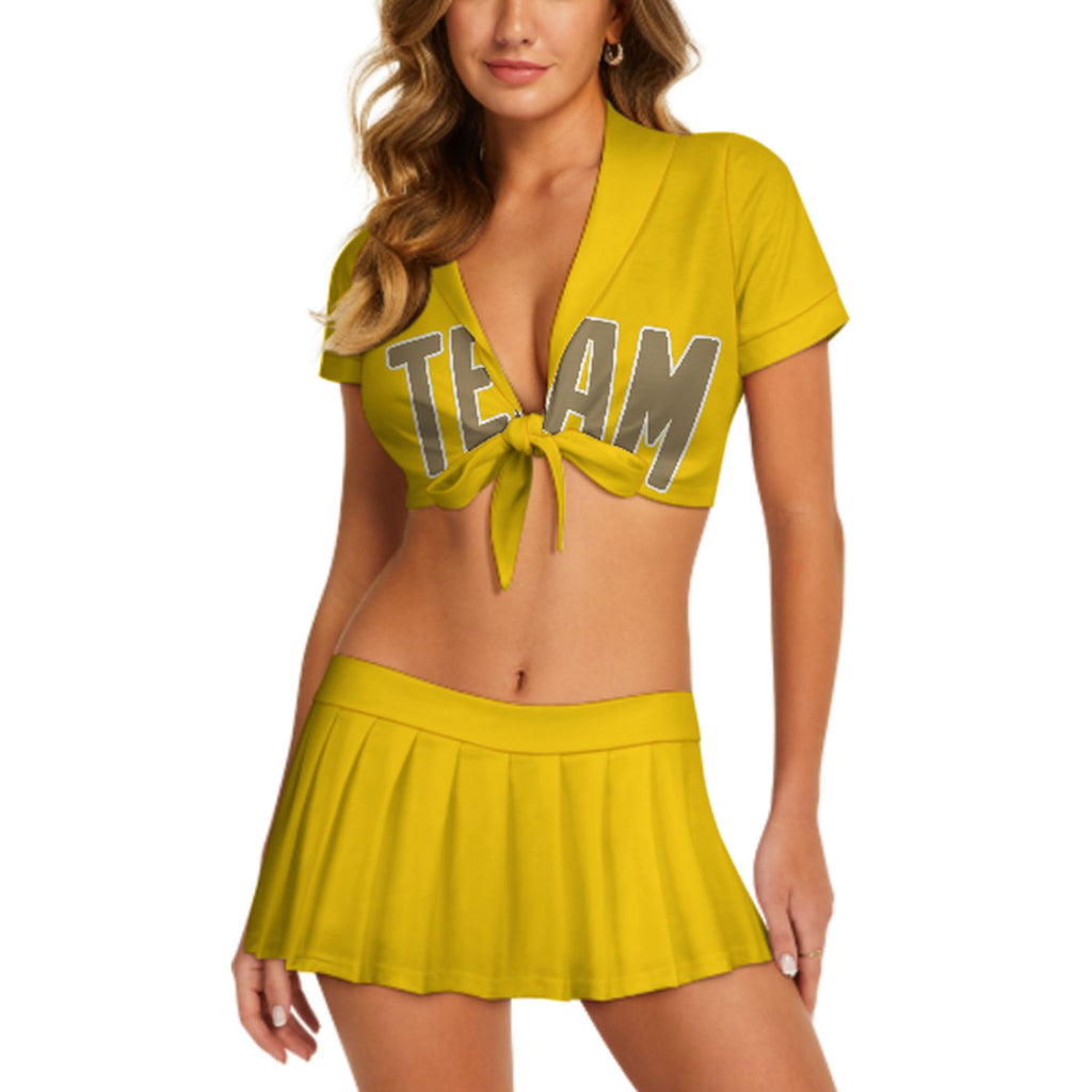 Custom Gold Light Khaki Cheerleading Uniform Set