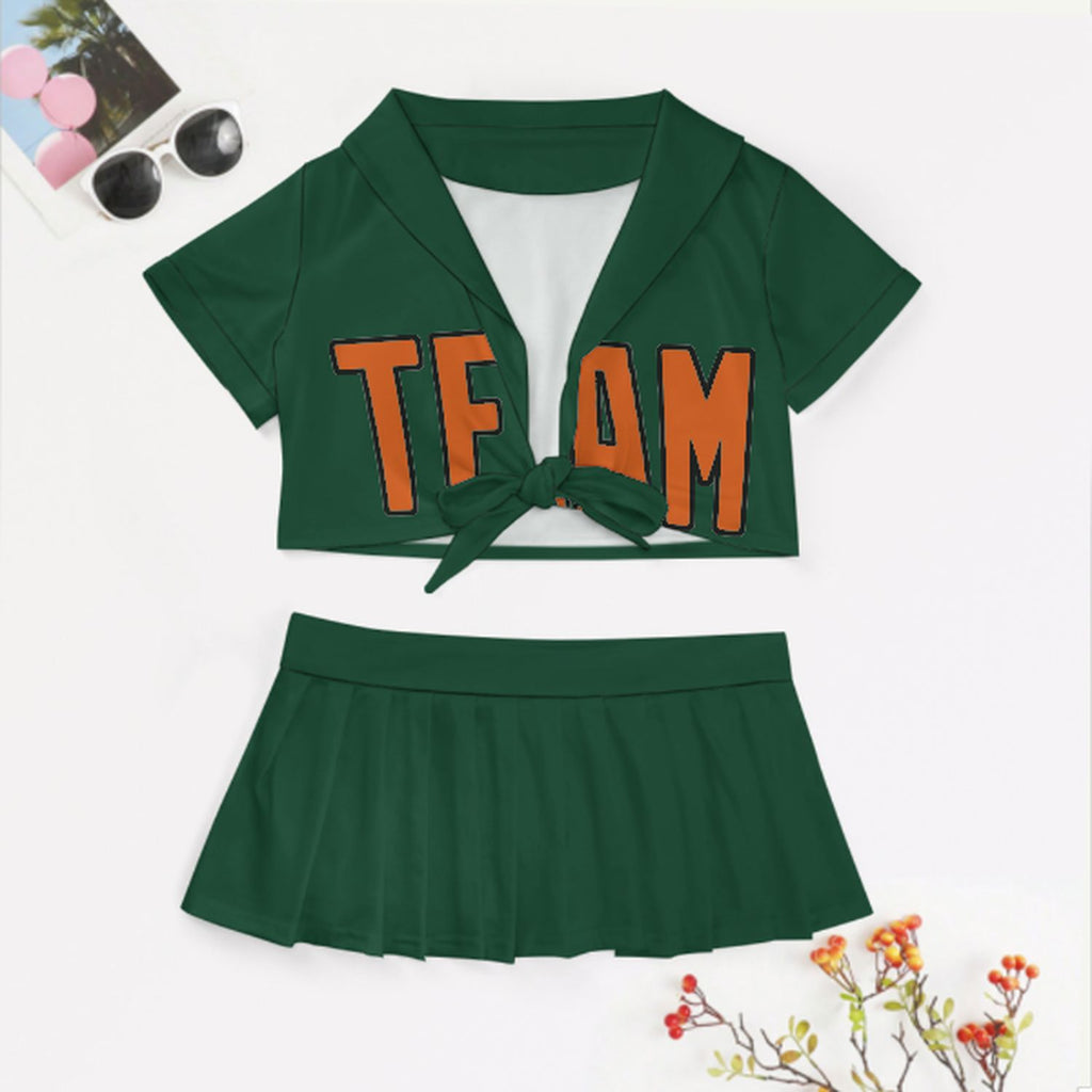 Custom Green Orange Cheerleading Uniform Set