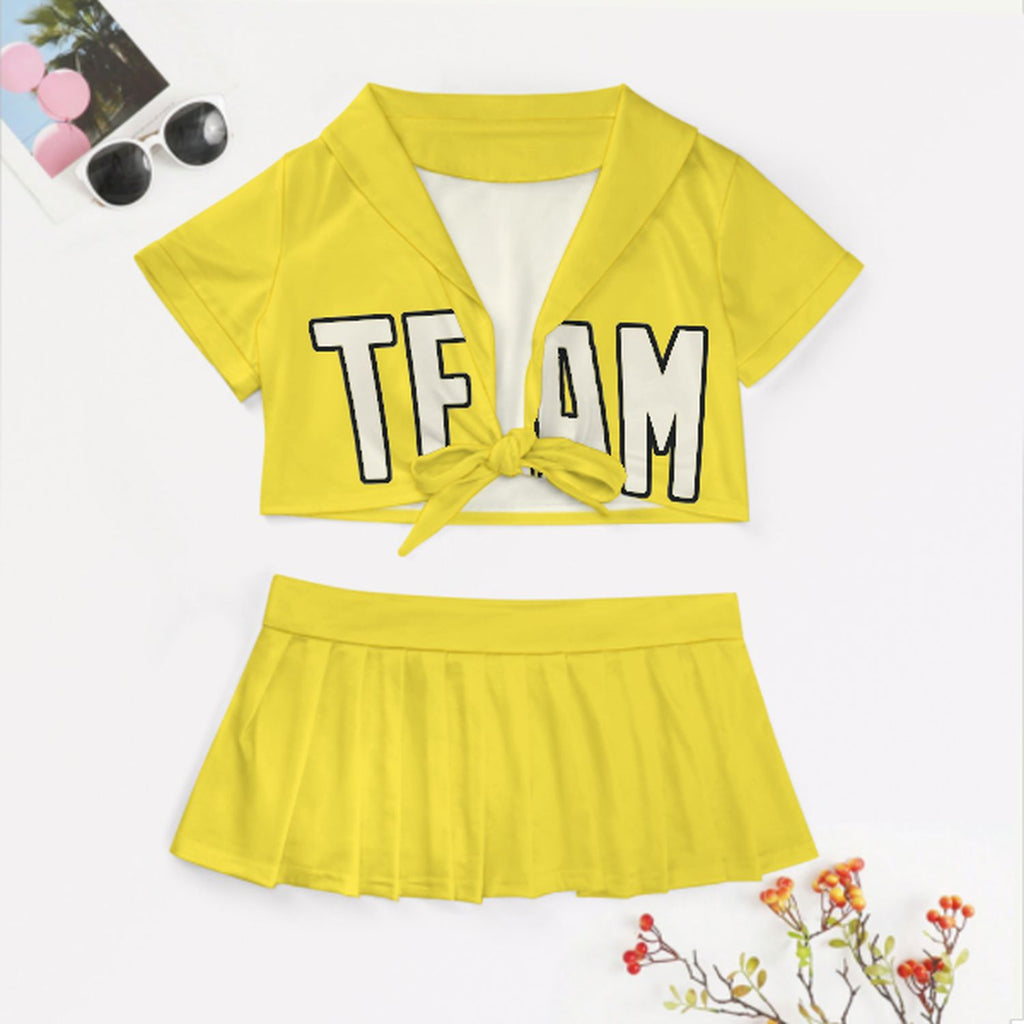 Custom Light Yellow Cream Cheerleading Uniform Set