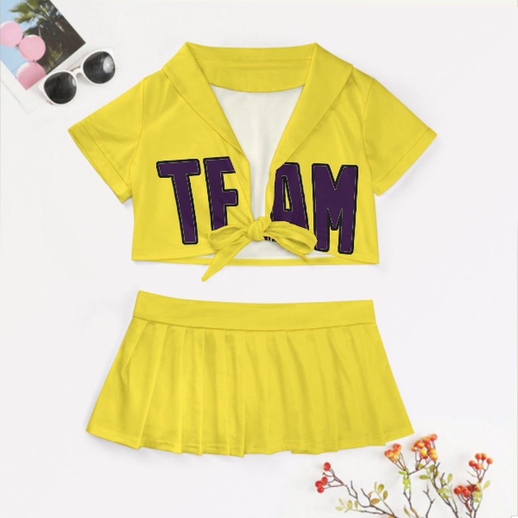 Custom Light Yellow Purple Cheerleading Uniform Set
