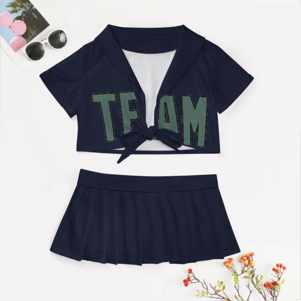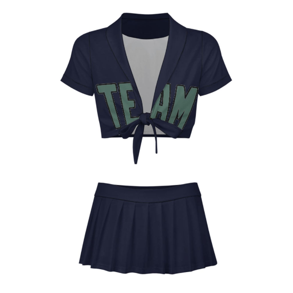 Custom Navy Blue Green Cheerleading Uniform Set