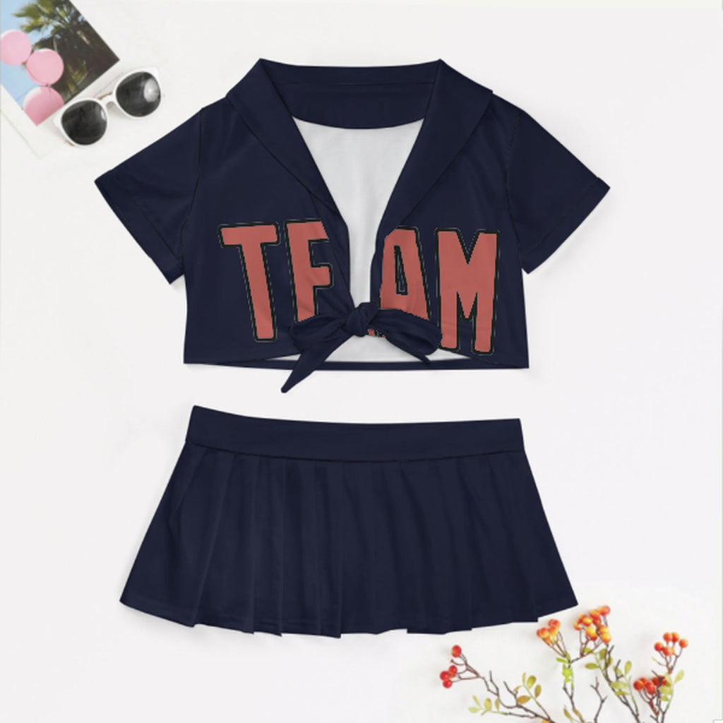 Custom Navy Copper Rose Cheerleading Uniform Set