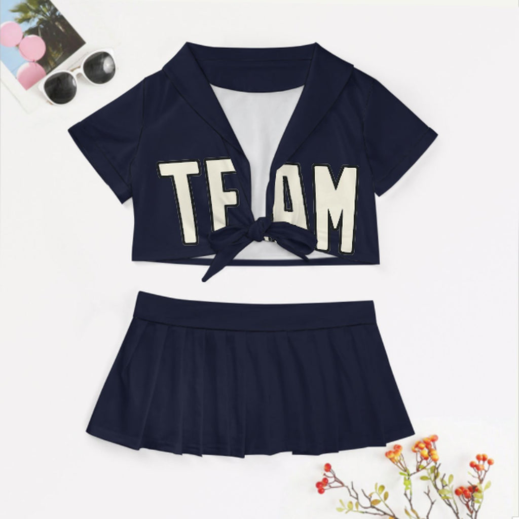 Custom Navy Cream Cheerleading Uniform Set