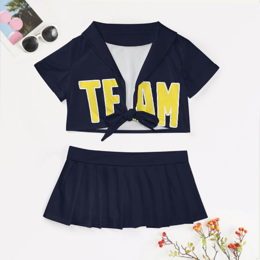 Custom Navy Light Yellow Cheerleading Uniform Set