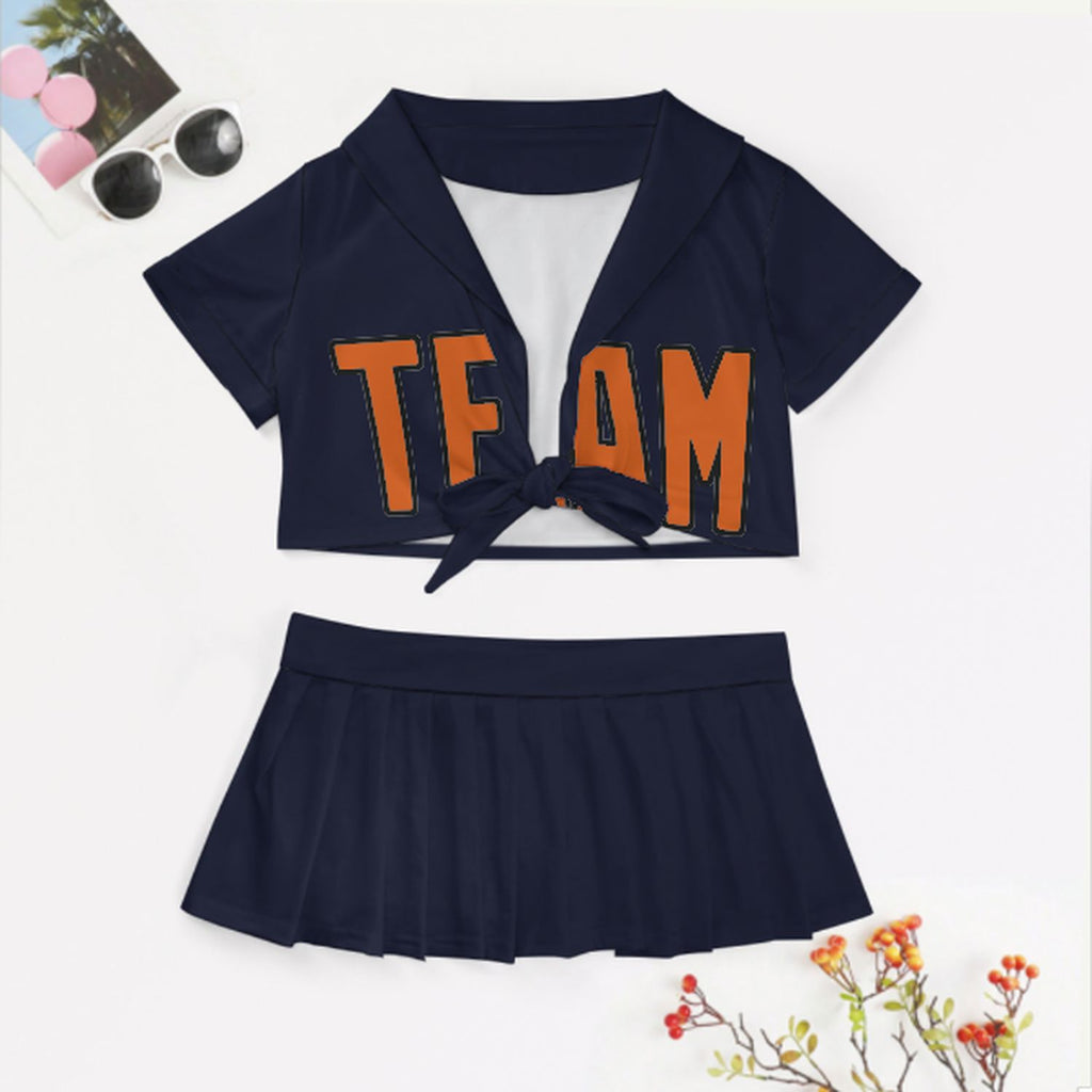 Custom Navy Orange Cheerleading Uniform Set