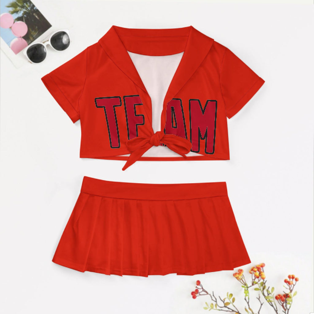 Custom Orange Red Red Cheerleading Uniform Set