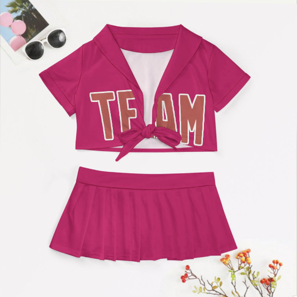 Custom Pink Copper Rose Cheerleading Uniform Set