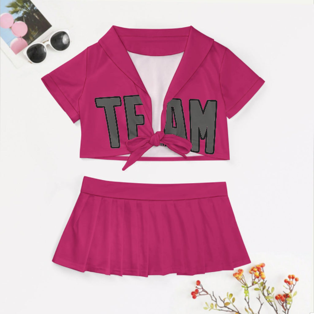 Custom Pink Dark Grey Cheerleading Uniform Set