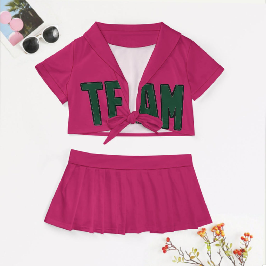 Custom Pink Green Cheerleading Uniform Set