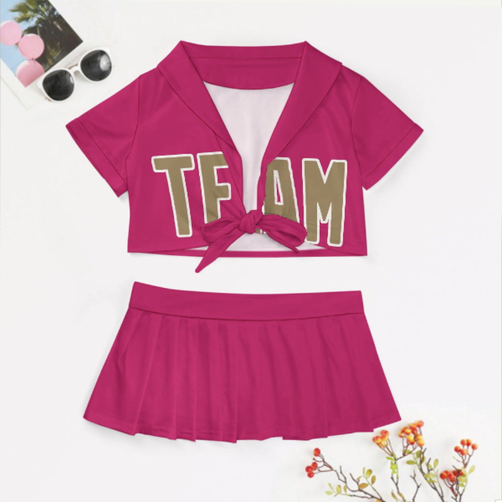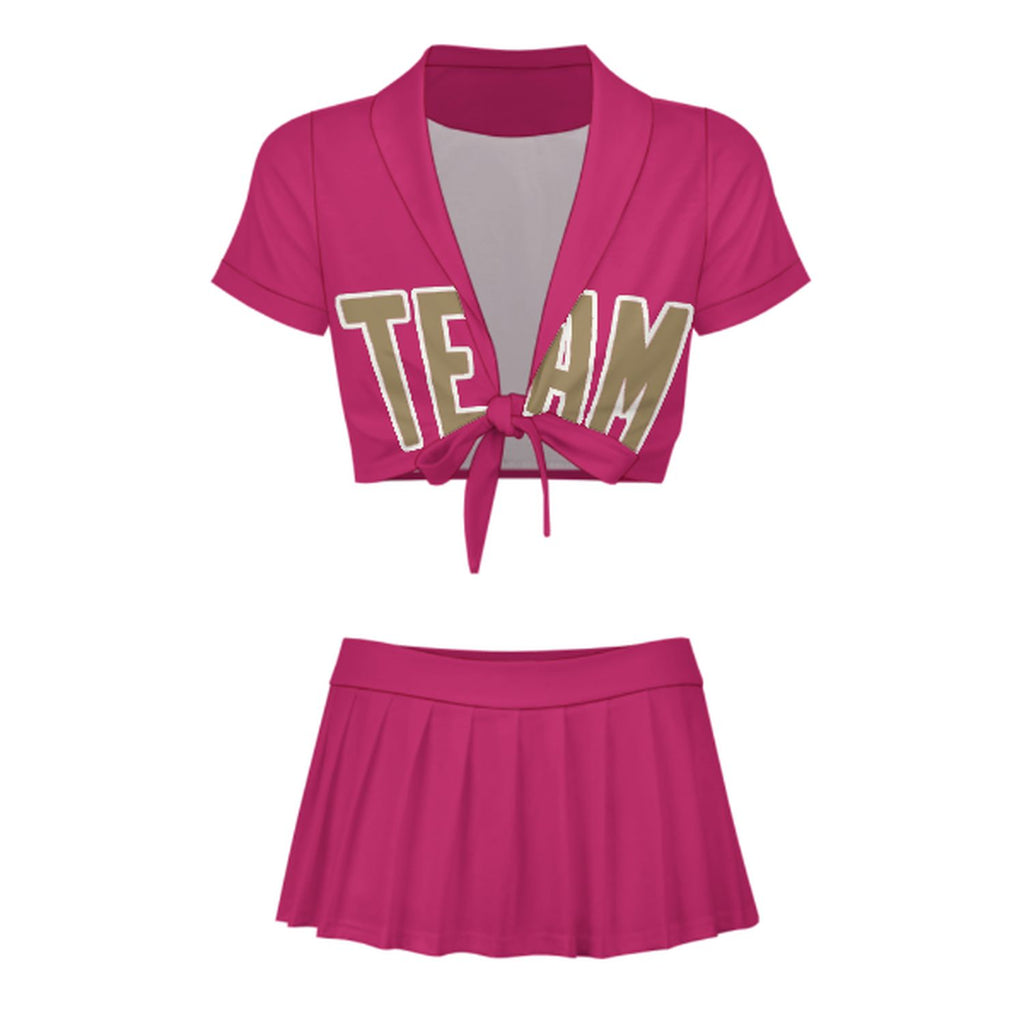 Custom Pink Light Khaki Cheerleading Uniform Set