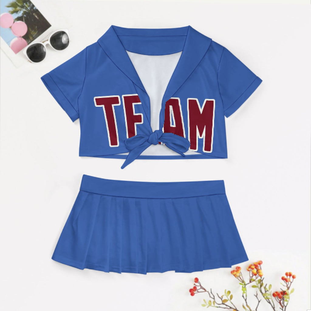 Custom Sky Blue Crimson Red Cheerleading Uniform Set