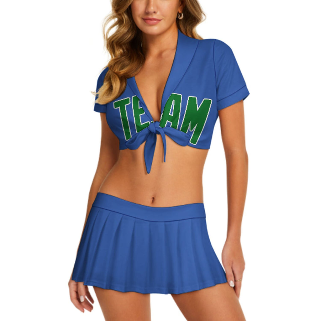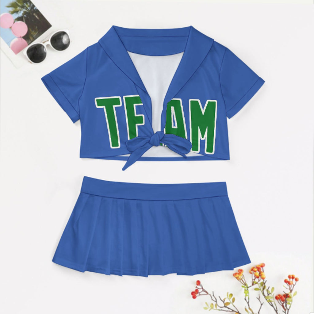 Custom Sky Blue Emerald Green Cheerleading Uniform Set