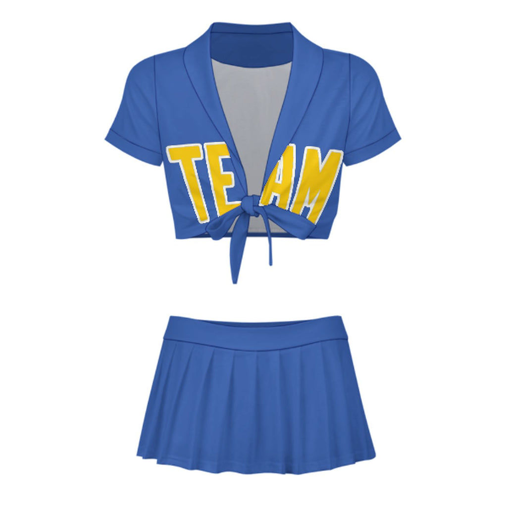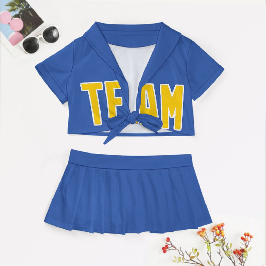 Custom Sky Blue Gold Cheerleading Uniform Set