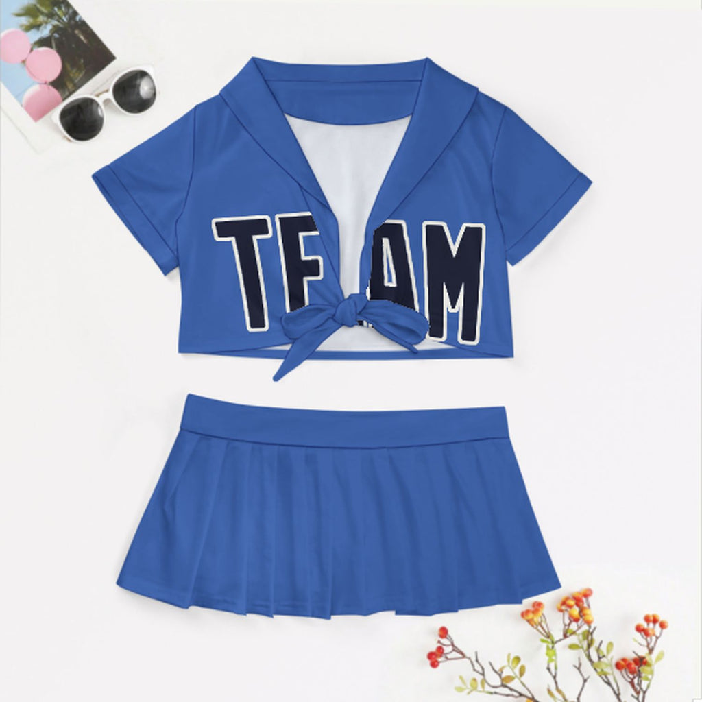 Custom Sky Blue Navy Cheerleading Uniform Set